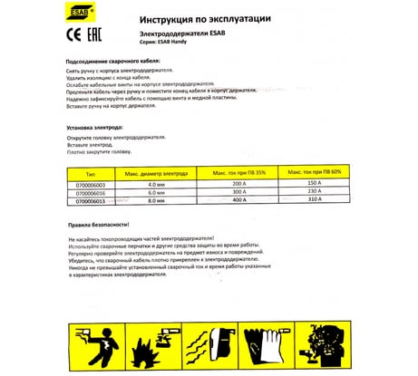 Отзывы об электрододержателе Handy 200 (200 А) для MMA-сварки ESAB СВ000005609