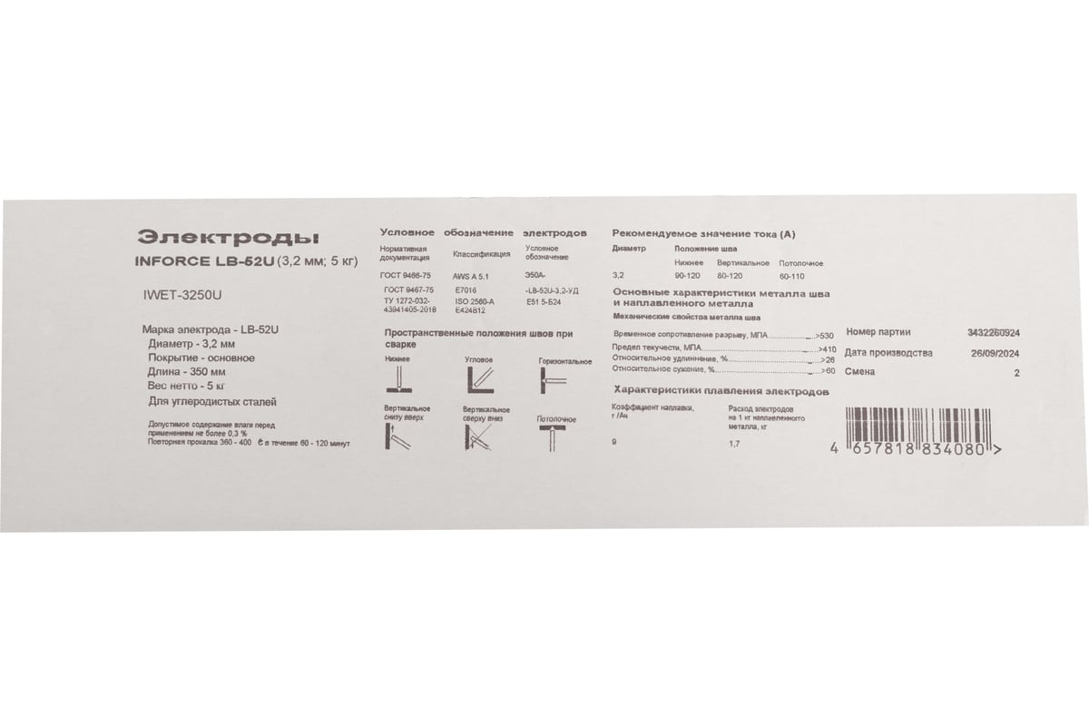 Электроды LB-52U (3,2 мм; 5 кг) Inforce IWET-3250U