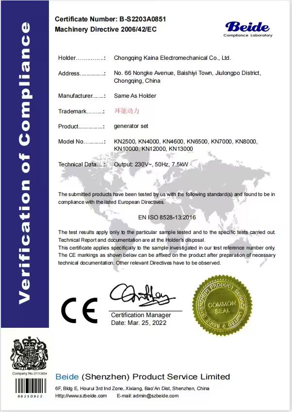Генератор соответствует требованиям нормативных документов: ТР ТС 010/2011, ТР ТС 020/2011.
