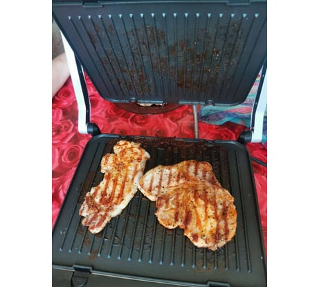 Гриль отличный!!! Ничего не пригорает, всё отлично прожаривается . Огромный плюс - регулировка мощности, благодаря которой всё готовится равномерно. Панели съёмные, легко мыть обычной губкой без каких- либо усилий . Цена - огонь!!! В использовании постоянно !!!