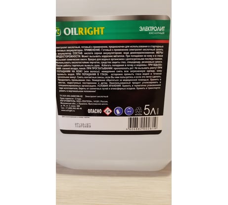 Отзывы об электролите OILRIGHT 5 л, 1.28 г/куб.см, пэт 5504