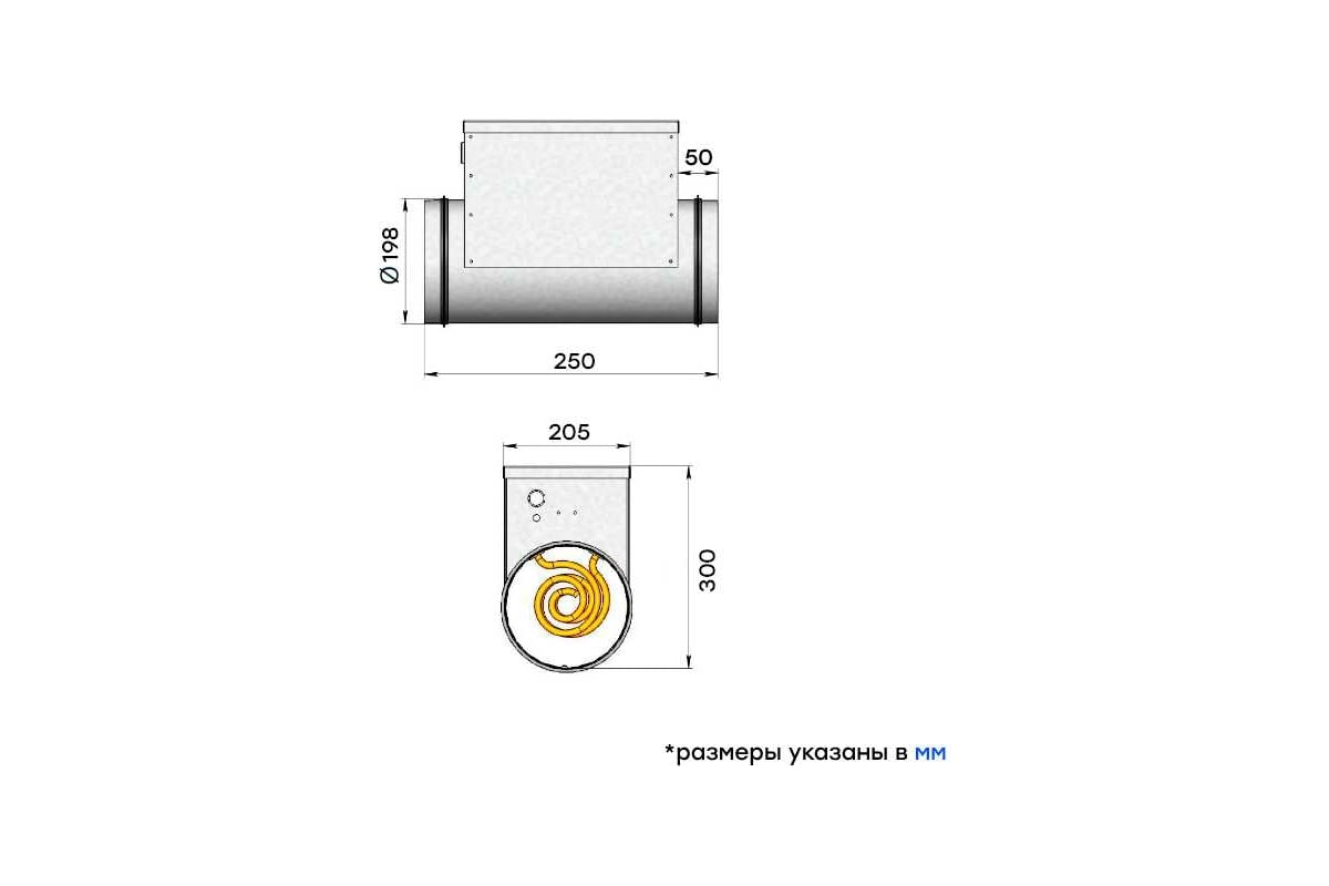 Электронагреватель E 2-200 (220В; 9.1А) Naveka F0000005599 для круглого воздушного канала диаметром 200 мм. Корпус изготавливается из оцинкованного стального листа. Нагревательным элементом является электрический ТЭН из нержавеющей стали с питанием от сети 1~220В. Номинальная теплопроизводительность - 2 кВт. В соединительной коробке имеются необходимые клеммы для электросоединений, с зажимами для простого и быстрого монтажа. Электронагреватель имеет степень защиты IP 43.