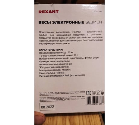 Отзывы об электронных весах безмен REXANT до 50 кг 72-1100