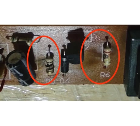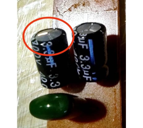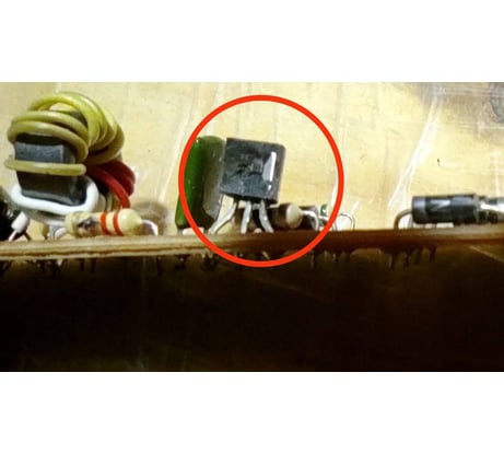 Обнаружил. Выводы элементов очень длинные, проткнули изоляцию и замкнули на корпус