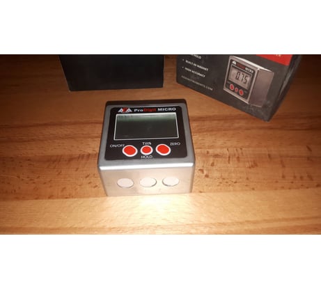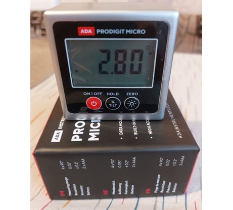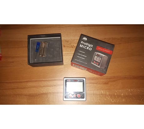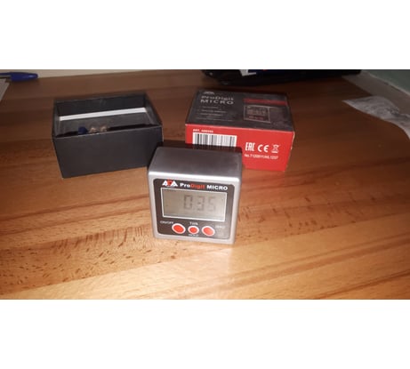 Инструментов прибавилось в столярной мастерской со временем, а вот изменить и настроить их, к сожалению, было нечем. Долго присматривался к угломерам и остановился на ADA. В целом, конечно, можно купить поверочный угольник и выставить весь инструмент по нему – но только 90 градусов. О каком инструменте я говорю? Настольную дисковую пилу, торцовочную пилу, ручную циркулярку – везде частенько приходилось пользоваться этим угломером. Сама конструкция угломера достаточно проста и пользоваться им удобно. Он очень устойчив и отлично стоит на ровной поверхности и не шатается. Шаг деления 5 сотых градуса, что для 99,9% работ достаточен, если вы не строите самолеты. Есть кнопки – вкл/выкл, и обнулить градусы. Если вы начнете переворачивать угломер не в той плоскости он покажет ошибку. А так всегда будет цифра от 0 до 90 градусов ровно. Если плоскость, куда вы поставили угломер не отражает «0», то нажав на соответствующую кнопку прибор будет сброшен и откалиброван снова в 0. Удобно согласитесь. Магнит – очень удобно, он прекрасно «липнет» ко всем пильным дискам, да и из-за малых размеров он на диске отлично помещается и не сползает вниз благодаря 3 магнитам. По фото видно, что на настольной циркулярке он отлично держится. Кажется, что областей, где можно его использовать мало, но это не правда. Когда строили дом на даче, нужно было ровно выпилить наличники на окна, чтобы они хорошо смотрелись с отливом, но его угол был неизвестен, опять же выручил угломер. Когда накрыли строение крышей, угол стропил по проекты был 17 градусов, и опять же на помощь пришел угломер. Но из-за небольших неровностей дерева угол постоянно гулял от 16,7 до 17,3 градусов. Согласитесь, что при строительстве эта погрешность мизерная. Сосед уже устал брать у меня угломер напрокат в итоге купил свой. Про комплект – есть варианты в пластиковом корпусе и в металлическом. Я держал в руках оба и советую именно металлический вариант. Да он более увесистый, но и более прочный, а на стройке и в мастерской случается всякое. В комплекте к нему идет небольшая инструкция по использованию, но боюсь после моего отзыва ее уже не понадобиться читать. Еще есть крошечная отвертка, удобная и ей легко откручивается задняя стенка. Коробка в которой сам угломер и поставляется достаточно жесткая и в ней удобно его хранить. В заключении хотелось бы сказать, что я ожидал меньшую точность чем получил. Угломер четко показывает свои 90 градусов, и совпадает с поверочным угольником. Произвольный градус выставляется, наверное, еще легче. Попробуете – и подумаете, как раньше без него жили.