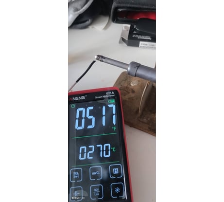 Паяльник бесполезный. Температуру не набирает. Не точто припаять, олово на кончике жала еле расплавляет. Вместо заявленной температуры 400 С, 280 максимальная.