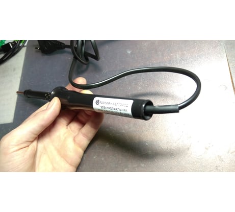 Итак. Электропаяльник 25 Вт ≈220 В производства ООО "Слюдяная фабрика", г. Белгород. Обращаю Ваше внимание, что это ЭПЦН, т.е. жало несъемное. Это одновременно и минус (ну несъемное же) и плюс: нагреватель плотно намотан вокруг жала, меньше тепловых потерь. У паяльников со сменными жалами, зажимаемыми винтом, то жало болтается в нагревателе, то винты отгорают/ослабевают и жала снова болтаются. Общая длина паяльника порядка 255 мм, жало ф=4,0 мм, рабочая длина жала 34,7 мм, сразу требует заточки напильником/надфилем. Длина пластиковой ручки 124 мм. Паяльник укомплектован проводом ШВВП 2х0,5 кв. мм неизвестного завода с кодом к195. 4 года назад производитель заявлял длину провода не менее 1,5 м. Сейчас заявляет 1,35 м. Но фактическая длина составила 1,24 м. Вилка литая без заземления на 2,5 А. В качестве защиты провода от перегиба на выходе из корпуса используется термоусадка. Сопротивление нагревателя при 20 градусах Цельсия составила 1,83 кОма, что при 220 В соответствует 26,45 Вт. В заявленные ±20% укладывается. На корпусе нет никаких обозначений марки, мощности и напряжения паяльника, из опознавательных элементов - только наклейка на ручке. В комплекте имеется паспорт и подставка из жестянки. При работе на металлических частях присутствует потенциал, а корпус теперь производится без "уха" для заземляющего контакта. Хотя, кого я обманываю? В большинстве домов нет заземления. Но паять чувствительную электронику таким паяльником я бы поостерегся. В общем, годный за свою цену паяльник без термостабилизации для непритязательных радиолюбителей, в чьей жизни еще не случились T12, TS100/101, SH72 или хотя бы 900M.