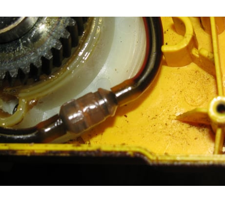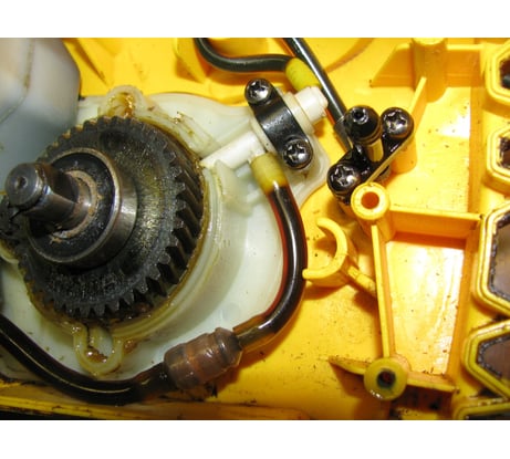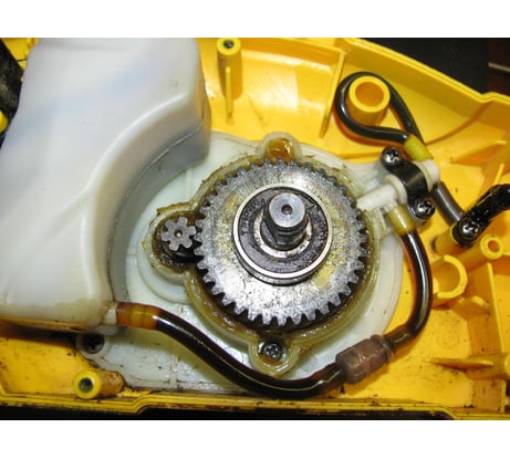 Режущий орган цепной пилы представлен шиной длиной 305 мм (12ʺ) и движущейся по ней цепи с толщиной звена 1.3 мм, шагом звеньев 3/8ʺ и их количеством – 45. В корпусе пилы, выполненном из прочного пластика, расположен масляный насос и бачок для автоматической смазки цепи. Электропила оснащена механизмом быстрой затяжки цепи.