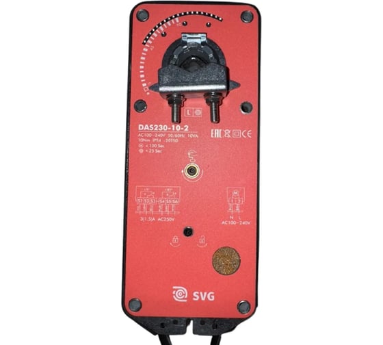 Электромеханический привод SVG DAS230-10-2 применяется для двухпозиционного управления заслонкой. Закрепляется на ее валу и регулирует положение в состояние открыто или закрыто.
