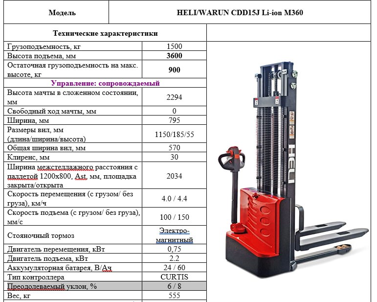 Благодаря надежной конструкции и качественным материалам, штабелер HELI G1.2 CBD20 гарантирует долгий срок службы. Он идеально подходит для различных складских операций, упрощая и улучшая рабочий процесс. С помощью электроштабелера CDD15JLi M360 можно уверенно повысить эффективность работы, снизить риски повреждения товаров и обеспечить безопасность в процессе перемещения грузов.