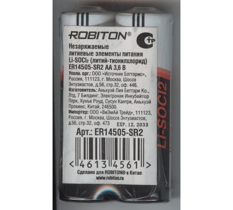 Расходные материалы для батарейки Robiton ER14505-SR2 AA SR2 11614