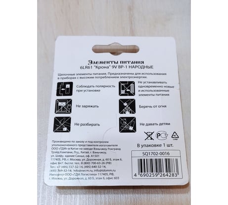 Отзывы об элементе питания TDM ELECTRIC 6LR61 "Крона" 9V BP-1 Народный SQ1702-0016