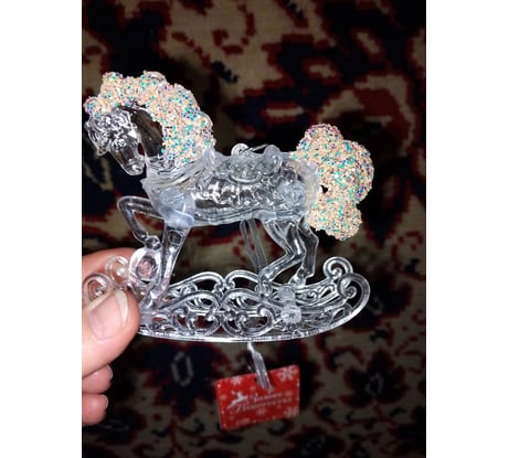 Отзывы об ёлочном украшении Зимнем волшебство Конь на подставке блеск 10,5х9,5 см 3576017