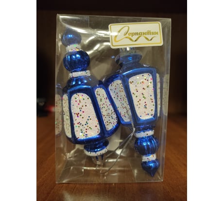 Елочные игрушки Серпантин "Фонарик" 11 см, набор 2 шт, синий 916-0377