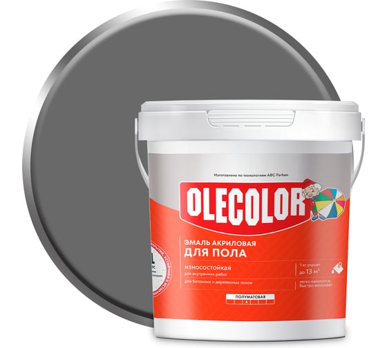 Эмаль акриловая для пола Olecolor 1кг, графит 4300017057