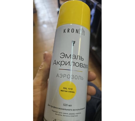 Эмаль акриловая Kronbuild RAL 1018 желтая, глянец, 520 мл SP1018G