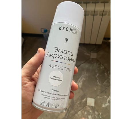 Как и у других кроновских баллонов здесь так же хороший распылитель и приличный напор струи. Поэтому ближе 20-30 см рекомендованных к окрашиваемой поверхности держать при работе не рекомендую. При соблюдении рекомендаций и предварительном нанесении грунта получается довольно стойкая однородная матовая белая поверхность.