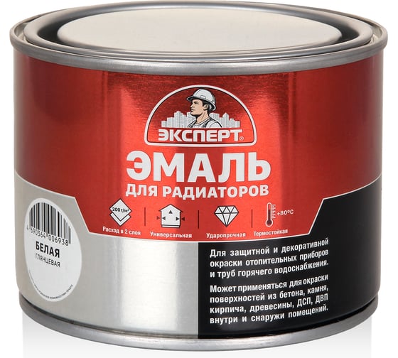 Эмаль алкидная для радиаторов ЭКСПЕРТ белая 0,5 кг 20248 применяется для экономичной окраски приборов отопления и металлических поверхностей внутри помещений. Можно применять на бетонных и деревянных поверхностях.