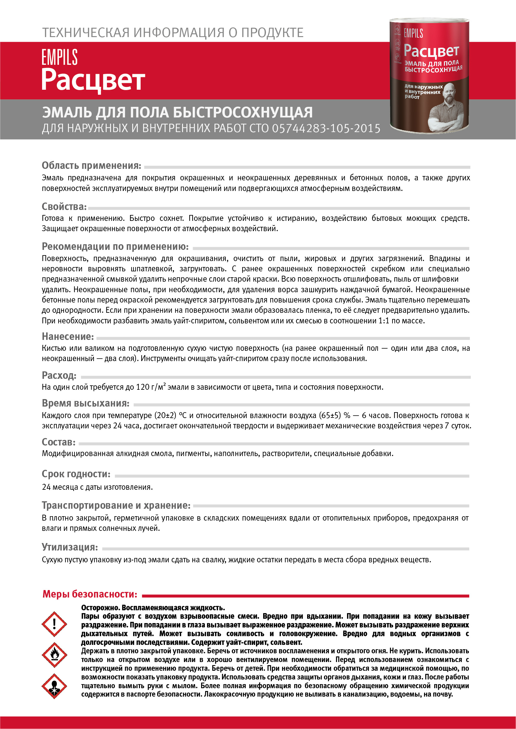 Эмаль соответствует требованиям СТО 05744283-105-2015.