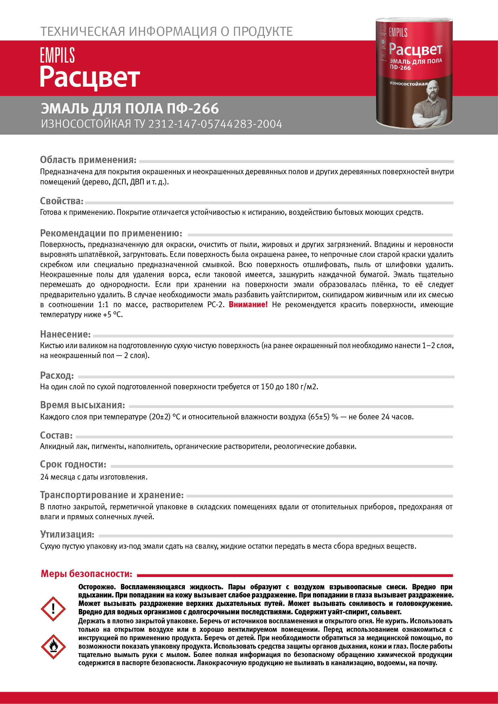 Эмаль для пола Расцвет золотисто-коричневая, 0.9 кг 10610 применяется для покрытия окрашенных и неокрашенных деревянных полов и других деревянных поверхностей внутри помещения (дерево, ДСП, ДВП и т.д.).