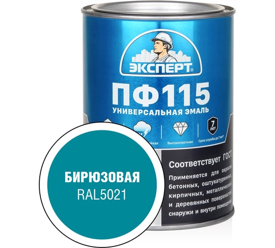 Эмаль ЭКСПЕРТ ПФ-115 глянцевая бирюзовая 0,8 кг 34059 применяется для защитно-декоративного окрашивания металлических, деревянных и минеральных поверхностей снаружи и внутри помещений. Продукт используют для обработки дверей, рам, перил, наличников, плинтусов, оград, механизмов и конструкций.