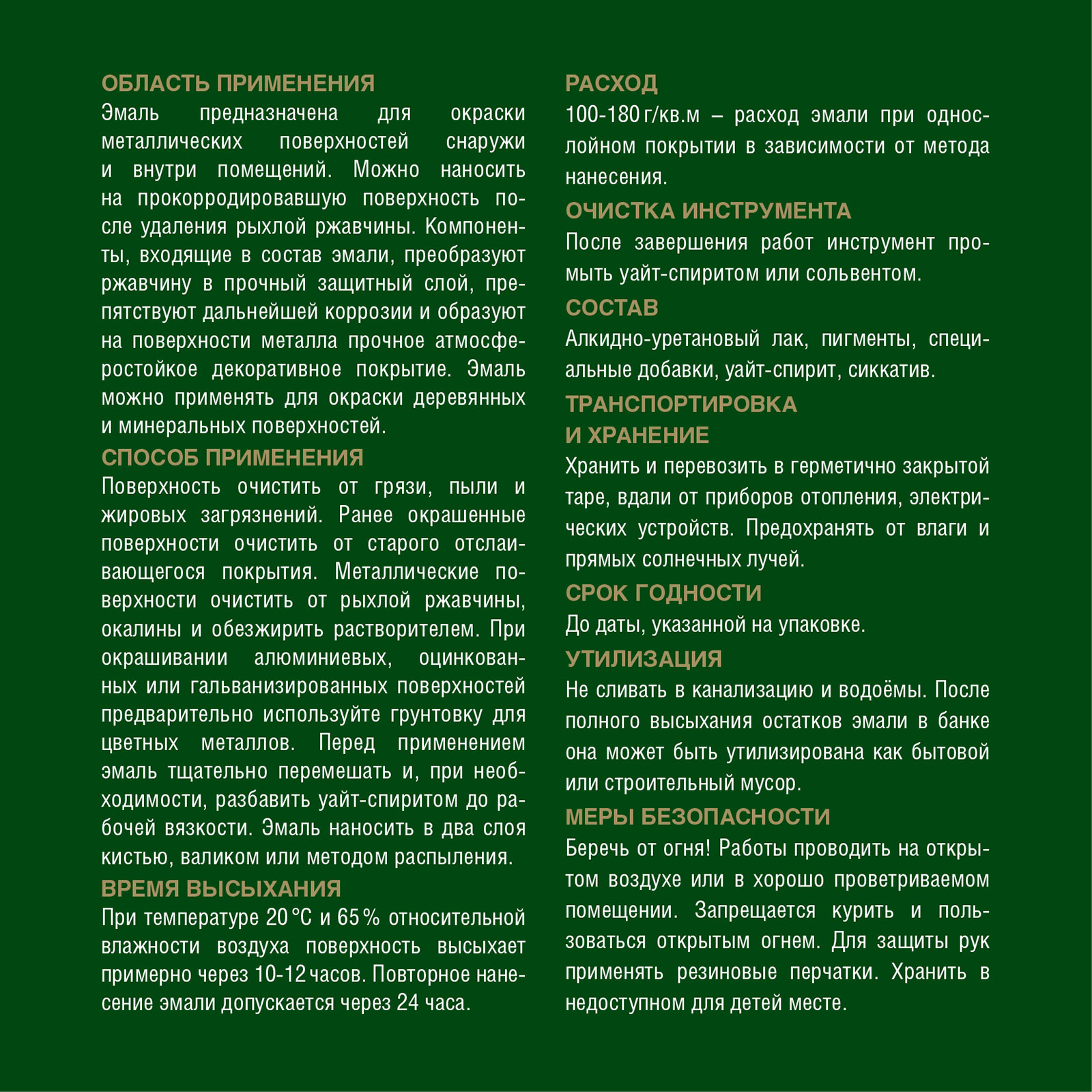 - Краска создана по формуле 3 в 1 (преобразователь ржавчины, грунтовка и декоративное финишное покрытие).