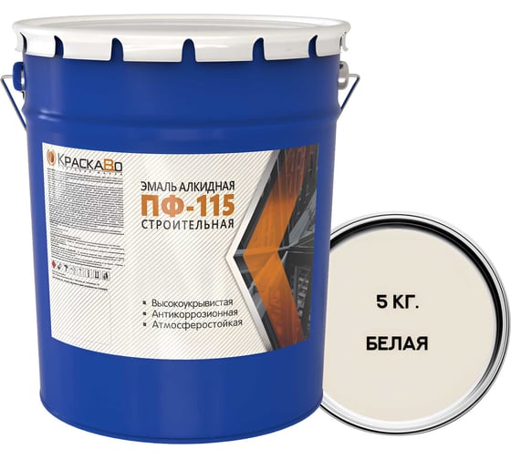 Эмаль Москвичка КраскаВо ПФ-115 БЕЛАЯ СТРОИТЕЛЬНАЯ 5кг. 4620105774208
