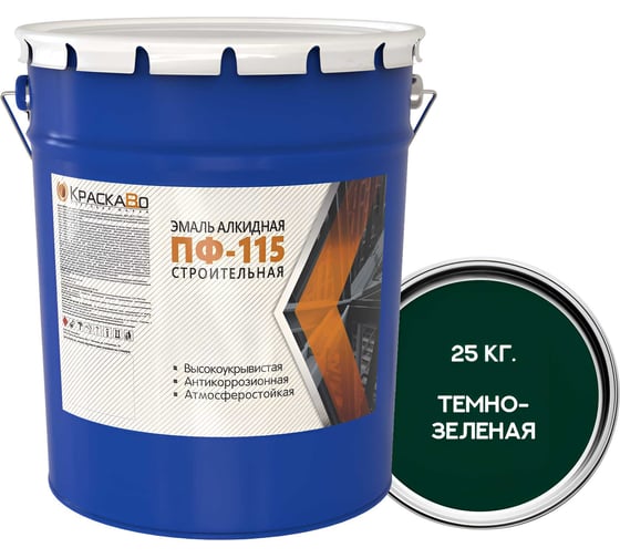 Эмаль Москвичка КраскаВо ПФ-115 строительная темно-зеленая 25 кг 4620105771849