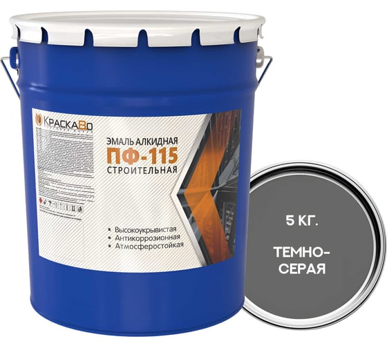 Эмаль КраскаВо ПФ-115 ТЕМНО-СЕРАЯ СТРОИТЕЛЬНАЯ 5кг. 4620105774345