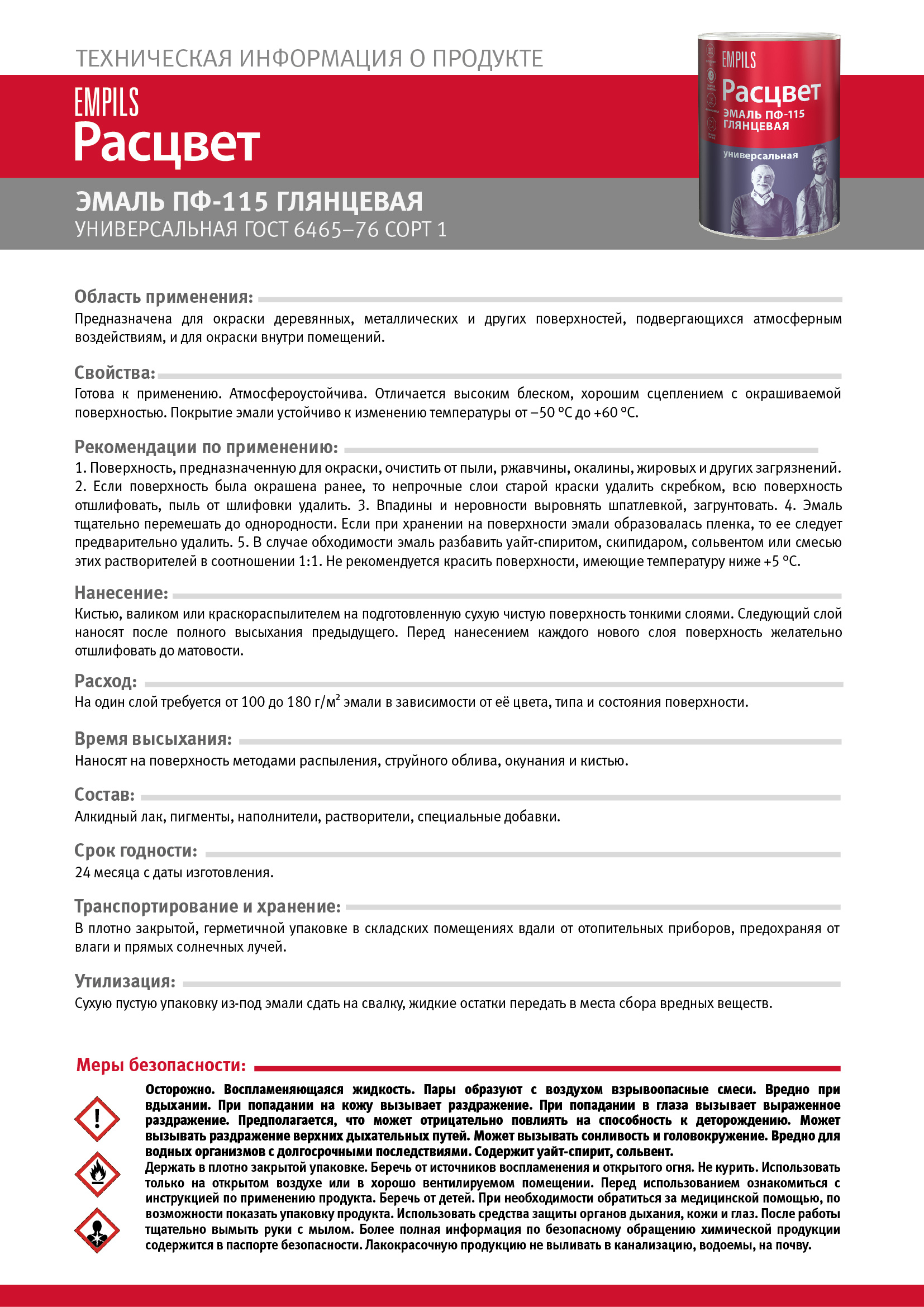 Эмаль Расцвет ПФ-115 морская волна, 2.7 кг 9287 предназначена для обработки деревянных, металлических, кирпичных, бетонных поверхностей, подвергающихся атмосферным воздействиям и для окраски внутри помещений (оконные рамы, двери, ДСП, ДВП и т.д.).