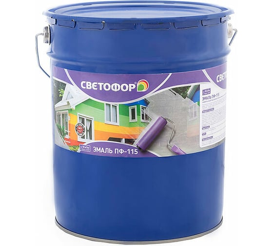 Эмаль Светофор СТАНДАРТ ПФ-115 светло-салатная, 20 кг ЗОР00003675 - универсальная атмосферостойкая эмаль с высокими защитными и эксплуатационными свойствами. Предназначена для окраски предварительно загрунтованных деревянных, металлических, кирпичных, бетонных поверхностей.