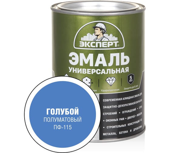 Все характеристикиЭмаль универсальная алкидная полуматовая ЭКСПЕРТ голубая 0,8 кг 30486 - универсальная алкидная эмаль применяется для защитно-декоративного окрашивания металлических, кирпичных, деревянных, бетонных и других минеральных поверхностей. Используют для обработки дверей, рам, перил, наличников, плинтусов, оград, конструкций и механизмов. Средство служит для внутренних и наружных работ.