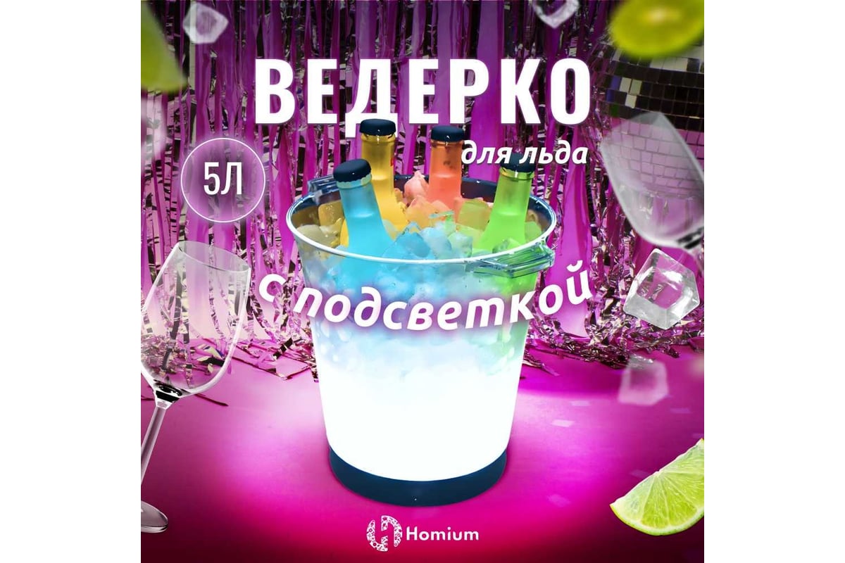 Ярко подать напитки охлажденными легко благодаря ведру для льда с LED подсветкой Homium Party.