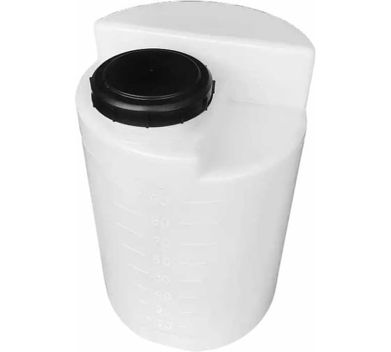 Бак изготовлен из качественного полиэтилена белого цвета бесшовным методом. На корпус нанесена градуировочная шкала, которая позволяет контролировать количество жидкости. На емкости предусмотрена удобная горизонтальная площадка для установки насоса, мешалки или иного оборудования.