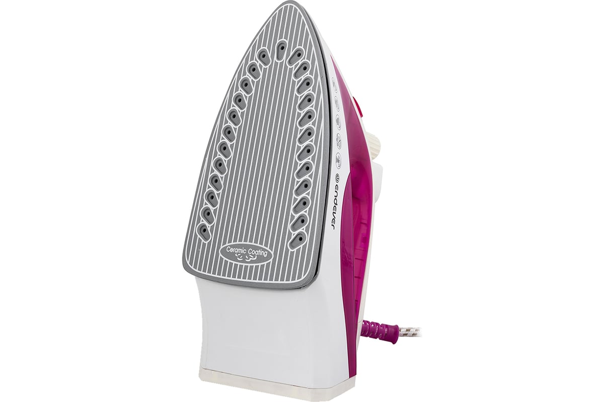 Утюг ENDEVER Delta 109 предназначен для глажения всех типов тканей. Подошва, изготовленная из керамики, обеспечивает устройству плавное скольжение, быстрый нагрев и устойчивость к повреждениям. Подача пара при максимальном нагреве осуществляется со скоростью 12 г/мин. Функция вертикального отпаривания позволяет разгладить такие вещи, как шторы, костюмы. Утюг оснащен регулятором терморежима на корпусе. В режиме работы без отпаривания можно использовать функцию «Спрей» — разбрызгивание воды из отверстия на передней части корпуса сразу на ткань, для ее увлажнения и облегчения процесса глажки.