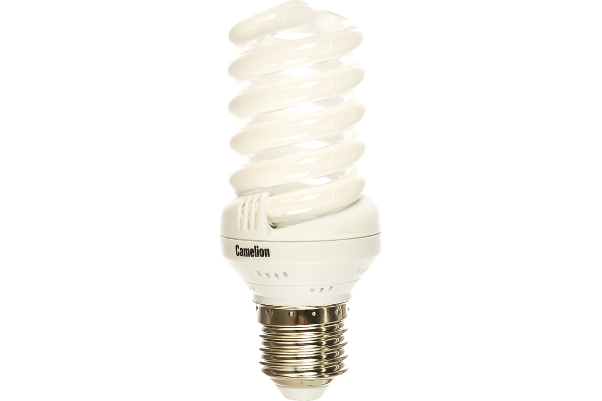 Энергосберегающая лампа 20Вт Camelion LH20-FS-T2-M/842/E27, 10523 имеет стандартный цоколь Е27 и подойдет ко всем осветительным приборам, где используются обычные лампы накаливания.