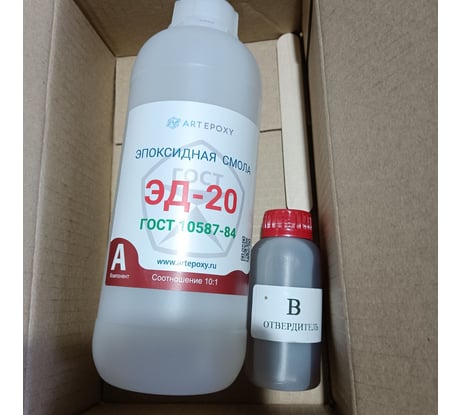 Эпоксидная смола ArtEpoxy ЭД-20 1 кг с отвердителем ПЭПА 100 гр ВИ-21618 предназначена для ремонта различных изделий и вещей, используется в строительстве и радиоэлектронной промышленности.