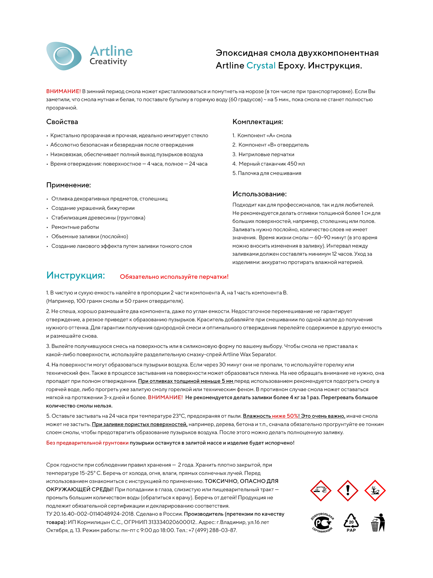 Эпоксидная смола Artline Creativity Artline Crystal с творческим набором 1 кг AC-CRY-01-000-S01 создана для всех видов творчества: заливки древесины, мебели, бижутерии, рисования картин.