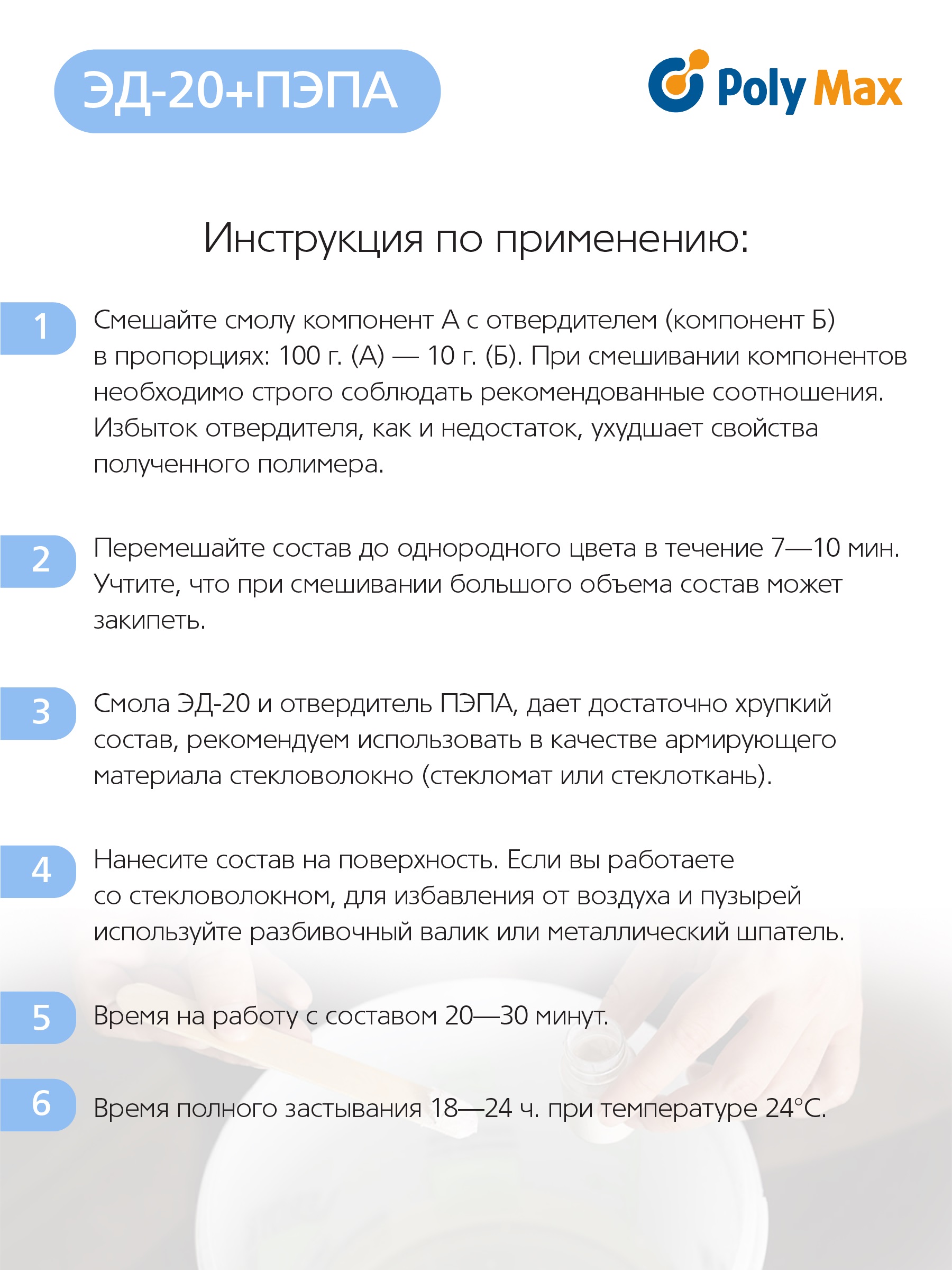 Эпоксидная смола Poly max ЭД20 100 г. + пэпа 10 г. 100+пэпа