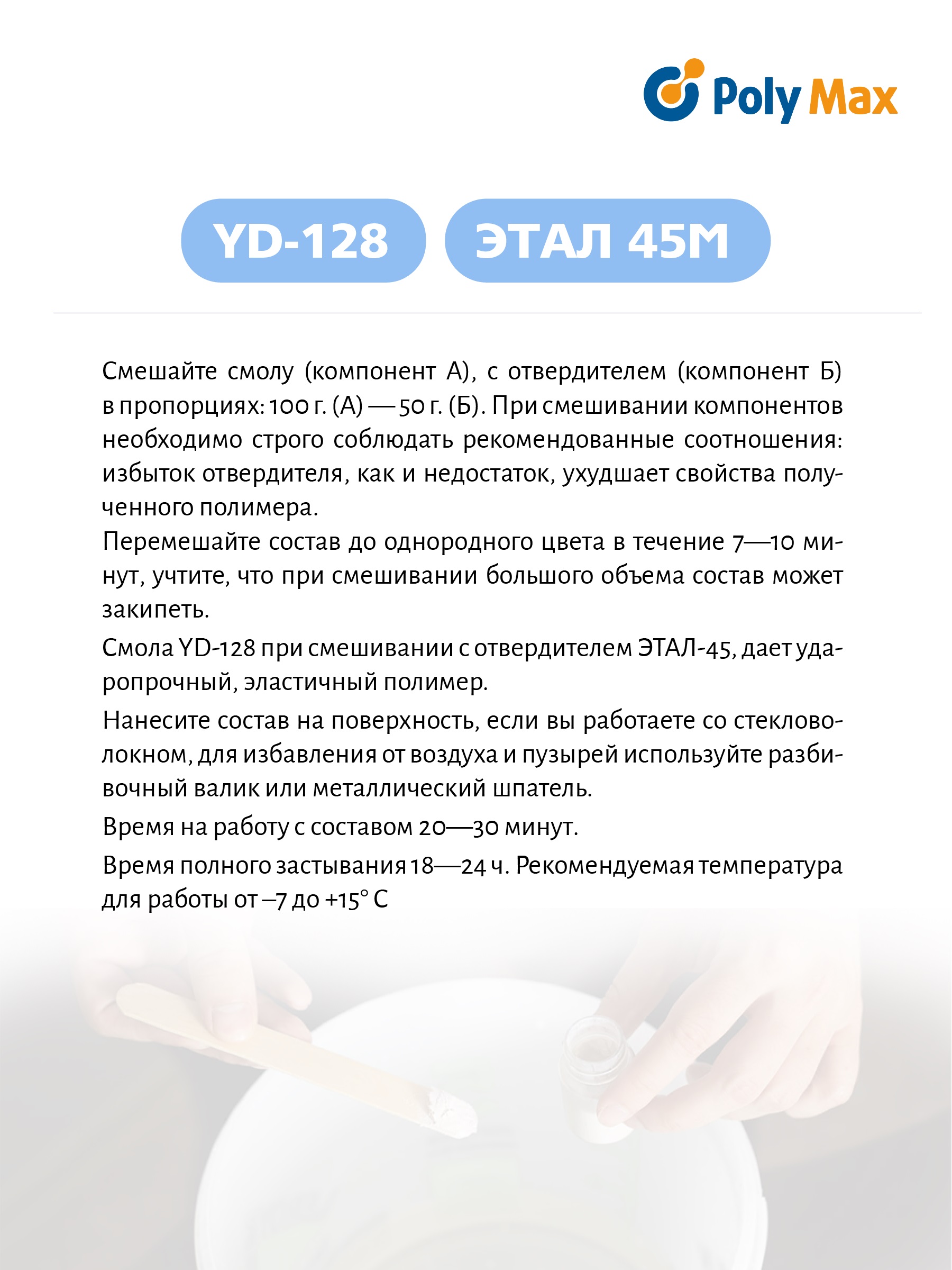 Эпоксидная смола Poly Max YD-128 с отвердителем ЭТАЛ-45 это высококачественный материал для ремонта и строительства лодок, яхт, изготовления обвесов и бамперов автомобилей, а также авиа моделирования.