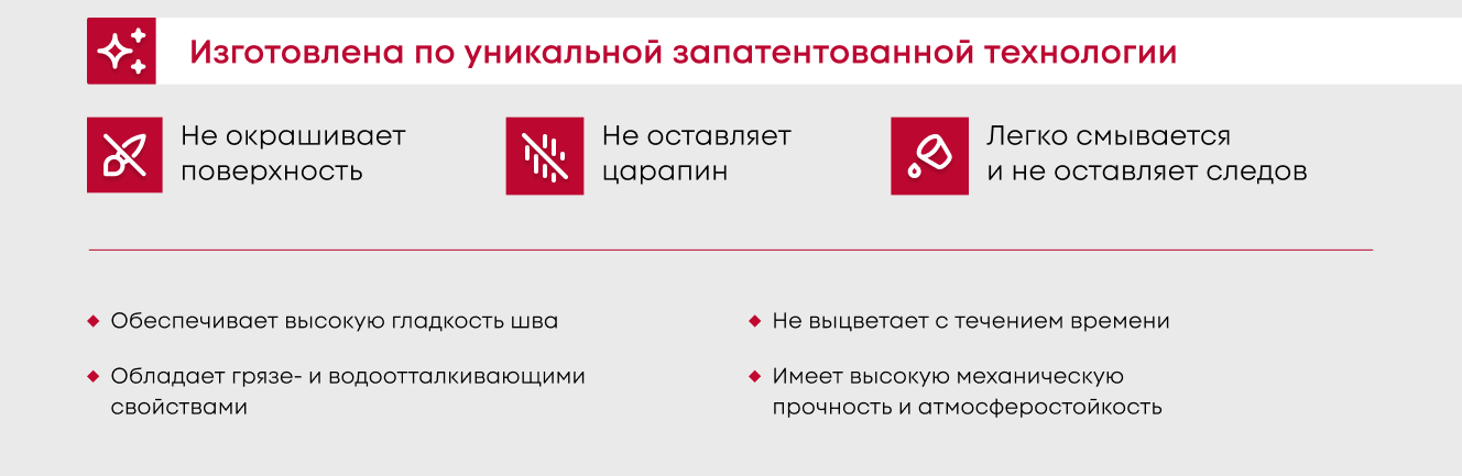 - Состав устойчив к погодным явлениям - обладает водонепроницаемостью и способен выдерживать температуру от -20°С до +100°С