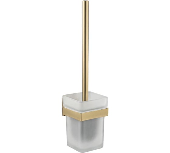 Ёрш для унитаза GFmark со стеклянной колбой, с креплением к стене из нержавеющей стали, с квадратным основанием, цвет матовое золото 93162