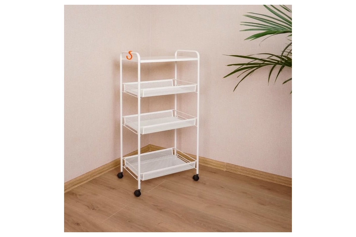 Этажерка имеет открытую конструкцию, за счет чего легко чистится, благодаря чему не требует сложного ухода.