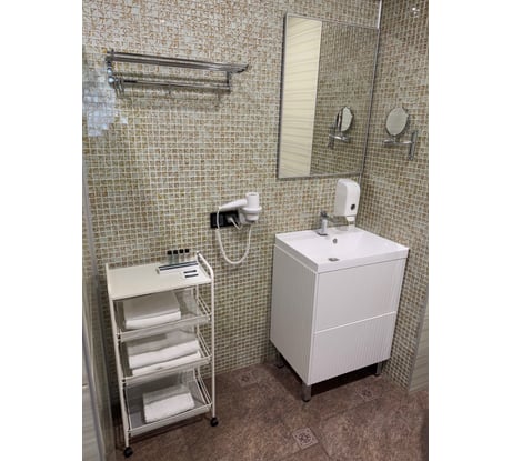 Нормальный стеллаж, помогает поддерживать порядок в ванной.
