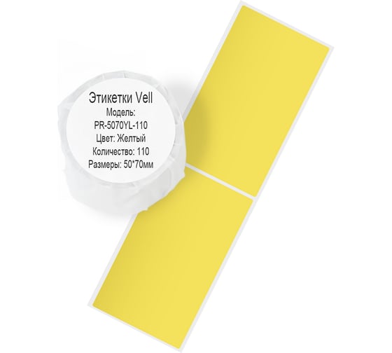 Этикетка для Puty Vell PT-50DC/PT-82DC 50 мм х 70 мм, жёлтые, 110 шт 535197