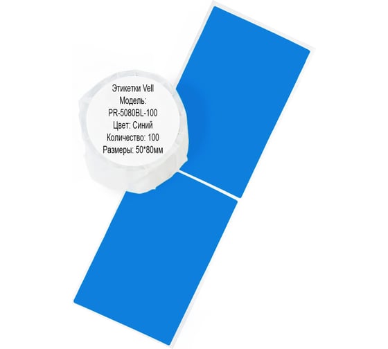 Этикетка для Puty Vell PT-50DC/PT-82DC 50 мм х 80 мм, синие, 100 шт 535163