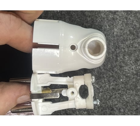 Недостатки Конструкция не продумана Отверстие кабеля и зажим кабеля в разных местах, вывести можно только тонкий кабель 3*0,5 5мм диамеир. Но он не зажимается Нет манжеты, болтается Все крепление на тонких опорах, легко ломается при более толстом кабеле, он упирается в ступеньку зажима и отверстием кабеля, не проходит