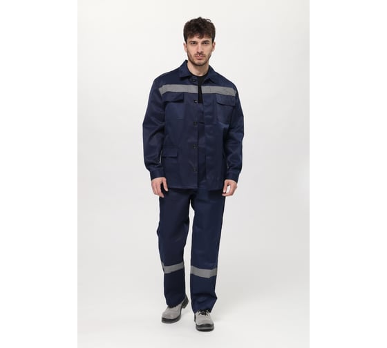 Костюм ФАКЕЛ Экспертный-Люкс СОП темно-синий, р. 52-54; 182-188 87468308.006 включает в себя куртку и полукомбинезон. Оснащен широкими светоотражающими полосами 50 мм для безопасной работы в местах с плохим освещением.