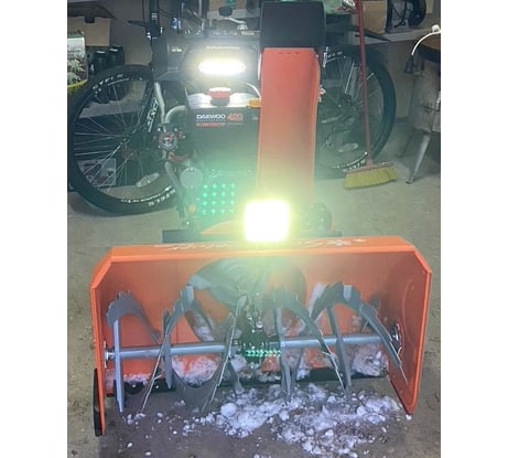 Установил основной свет на снегоуборщик, т.к. штатный светит отвратительно. Снег убирал вечерами, очень пригодилась. Светит шикарно