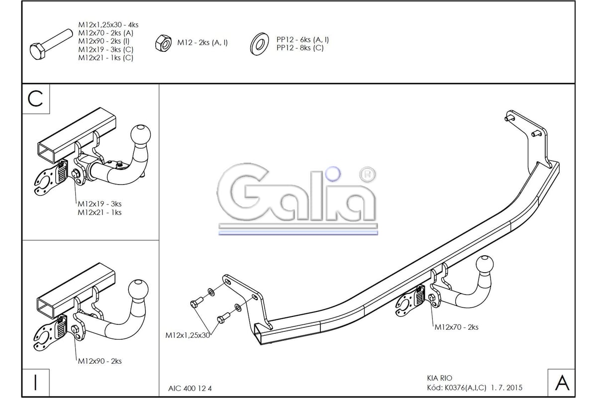Полностью оцинкованный фаркоп GALIA для Kia Rio III хетчбек/седан 2011-2017 тип шара A K037A